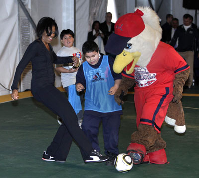 在活动的启动仪式上,米歇尔发言说:“我们决定从现在开始采取切实措施应对我们国家面临的一项重要挑战,那就是在美国各地普遍存在的儿童肥胖问题。”米歇尔还说,踢足球是一个很好的锻炼方式,它可以让参与者的全部身心都运动起来。