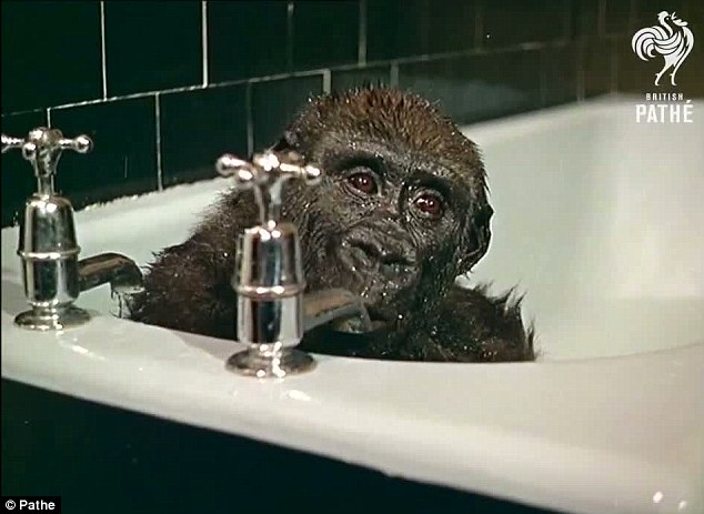 猩猩宝宝快乐沐浴照网上疯传 40多年前影像也很酷(组图)