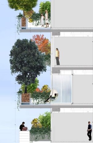 设计师希望这对姐妹楼能够降低城市交通污染,也为当地居民遮挡地中海的炎炎烈日,并可以随季节的变化而自然改变建筑外观——春天绿意青葱,秋天五彩斑斓。“摩天森林”的居民将不仅仅是人类和植物,通常以米兰各个广场为家的鸟类、昆虫及小动物们也将居住于此。
