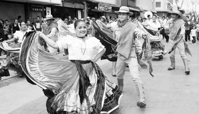 图为民众在哥斯达黎加首都圣何塞新唐人街开幕庆祝仪式上起舞。新华社发