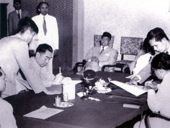 1955年4月,周总理与印尼外长苏纳约共同签署中国和印尼关于双重国籍的条约。