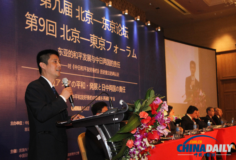 27日,第九届北京-东京论坛在北京闭幕并发表《北京共识》。图为中国日报社副总编辑高岸明致辞。(摄影:中国日报 邹红)