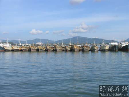 港湾里静静停泊着许多船只。在这样的碧海蓝天里,让人不禁向往起渔夫的生活来。