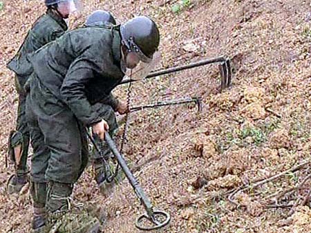 在示范扫雷中,陈代荣带着学员专啃“硬骨头”。塞坝村附近的2号雷场,被誉为“国际地雷博物馆”。这里埋有数以万计的地雷,是周围几个雷区中范围最大、布雷最多、种类最杂、时间跨度最长的雷场。此时,陈代荣心里非常清楚:自己代表的是中国,面对雷场,稍不留意,付出的不仅是生命的代价,更是一个大国的声誉。为此,他每天不仅要负责组织实施教学,还要担任扫雷示范员、教练员,亲手排除每天发现的第一枚地雷,以及其它复杂的不易排除的险雷。