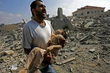 2006年7月30日,以色列空袭黎巴嫩南部村庄,一名男子抱着死去的女孩求助。