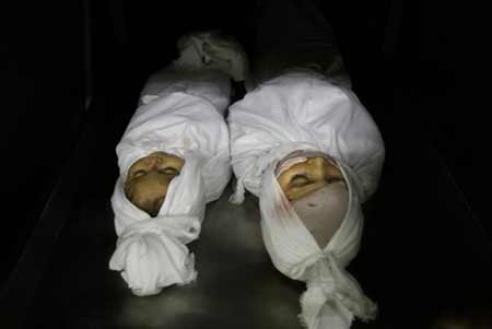 2006年7月26日,加沙北部,两名女婴(分别为7个月和3岁)尸体被停放在医院的停尸间内。