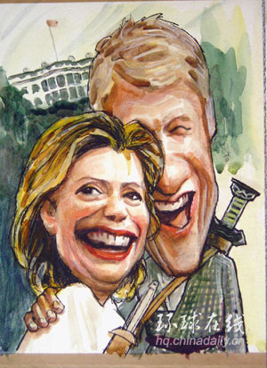 《神雕神侣》——克林顿夫妇(中国日报网站独家漫画)