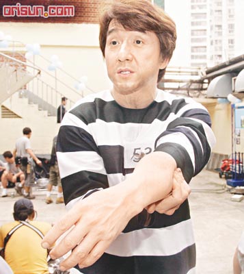 昨天,大队人马在某个已经停用的监狱取景,拍摄一场关机的重头戏。古天乐、成龙和许冠文分别示范监狱的酷刑,但看上去似乎搞笑成分居多。在还没有正式拍摄的时候,成龙与古天乐不时会在一旁逗片中的主角小宝宝。两个大人一个小婴儿,散人玩得不亦乐乎!