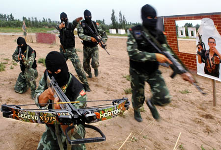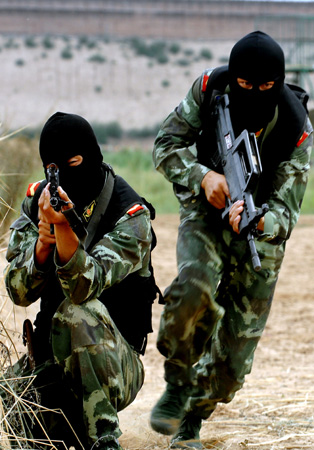 中国日报网环球在线消息:7月22日,武警宁夏某部举行反恐突击演练,内容包括应急事件处置、模拟人质解救等项目,以满足部队在新形势下“反劫制暴”的要求。(来源:新华社 编辑:陈凡)