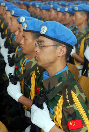 维和官兵在第三批赴黎巴嫩维和工兵营成立仪式上