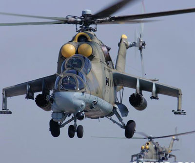 俄罗斯方面出动的米-24攻击直升机。新华社记者李刚摄