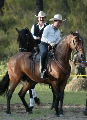 8月23日,陈水扁在与洪都拉斯总统塞拉亚骑马时,险些摔倒闹笑话。法新社