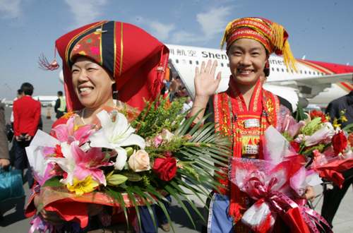 中国日报网环球在线消息:10月12日,出席十七大的各个代表团陆续抵京,已有六个代表团抵达北京,分别是西藏,陕西,广西,贵州,湖北,湖南。其中,西藏代表团于12日10时25分乘飞机抵达首都国际机场,成为第一个抵达北京的京外代表团。