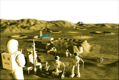日本宇宙研究开发机构制作的在月球建立的有人空间站假想图
