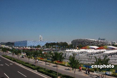 9月2日,北京依然晴空气朗,游客乐游奥运村。奥运会期间,“鸟巢”、“水立方”等北京奥运场馆给全世界留下深刻印象。“十一”黄金周期间,奥运场馆将最大限度地保留奥运赛事时的场景和设施,向北京市民和各地游客开放,供人们参观游览。中新社发追影 摄