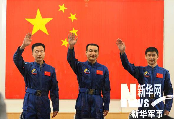 “神舟七号”载人航天飞行任务航天员乘组[新华军事记者 李刚摄影]