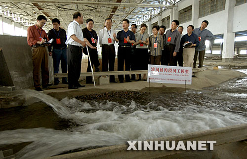 这是2005年5月15日,安徽省蚌埠市政协委员在淮河水利工程实验室观看水利工程模型实验,为淮河综合治理献计献策。新华社发