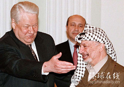 会见巴勒斯坦领导人阿拉法特(资料图片)