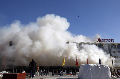 中国日报网环球在线消息:据美国媒体报道,巴基斯坦首都伊斯兰堡的万豪酒店2月26日晚发生火灾。大火吞噬了酒店的底层和第二层,截至目前已经有9人受伤。
