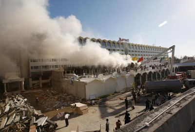 万豪酒店的发言人表示目前还不清楚火灾原因。不过酒店看门人艾哈迈德•沙阿透露,大火最先从餐厅的厨房燃起。酒店附近的目击者称,他们听到了爆炸声,不过声音不大。酒店管理层解释,那是因为大火造成店内一个锅炉爆炸。