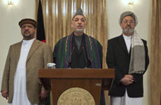联合国秘书长潘基文11月2日出人意料地出现在阿富汗,与卡尔扎伊和刚刚宣布退出大选的前外长阿卜杜拉举行了会晤。他在新闻发布会上说,联合国支持和尊重阿富汗选举委员会的决定,将与阿富汗新政府合作。
