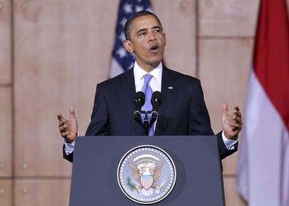 11月10日,奥巴马在印度尼西亚大学发表演讲。