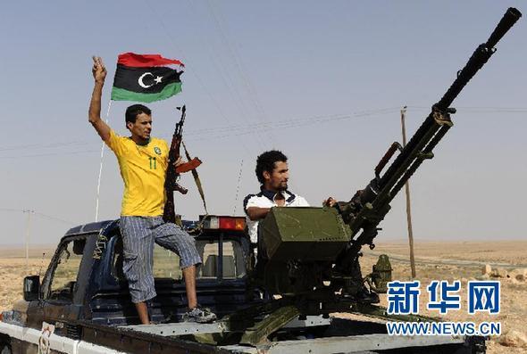9月4日,在利比亚城镇本·瓦利德附近,反对派武装人员在新设立的检查点旁警戒。 新华社/法新