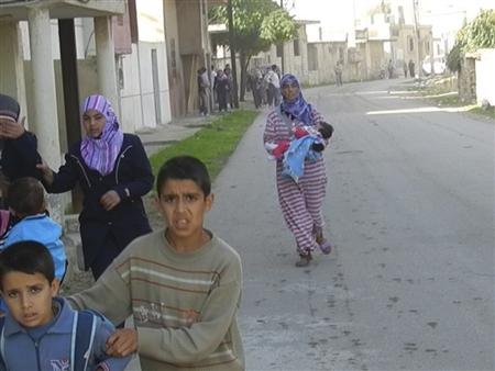 11月6日,在房屋遭到炮弹轰炸后,叙利亚霍姆斯一些居民逃出家门