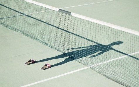 网球场上的赫瓦斯影子和拖鞋。