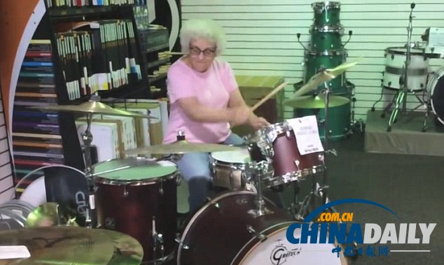 据英国媒体7月22日报道,一位老太太日前在美国威斯康星州的一家乐器商店里进行了一段即兴架子鼓演奏,店内工作人员把视频传到了网上,令观看者们也感受到了这位老人的激情。