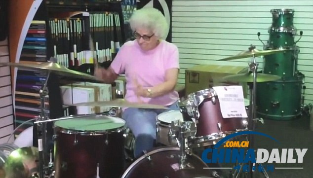 高龄“奶奶鼓手”震撼独奏 摇滚范儿征服网友