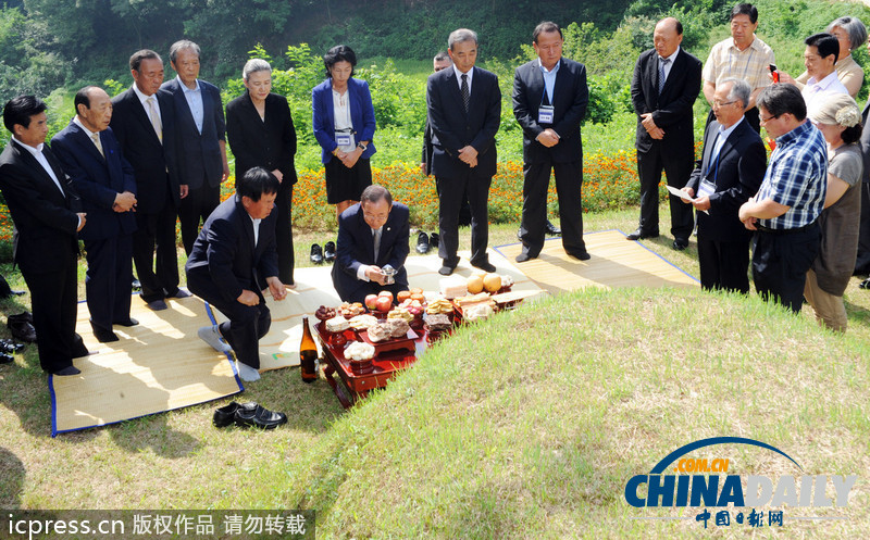 联合国秘书长潘基文夫妇回乡祭祖扫墓