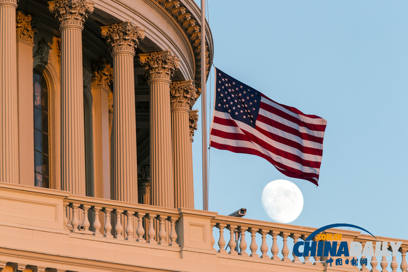 当地时间2013年9月16日,美国华盛顿,国会降半旗悼念美国海军枪击案死难者。