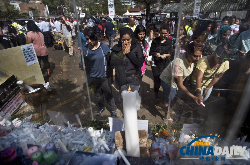 肯尼亚宗教信徒跳舞点蜡烛悼念商场袭击案中遇难者
