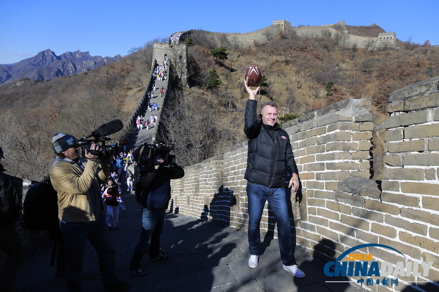 橄榄球巨星蒙塔纳长城秀绝技 与学生互动