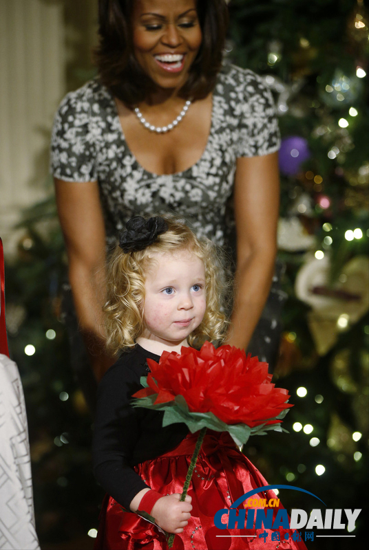 当地时间2013年12月4日,美国华盛顿,第一夫人米歇尔 ·奥巴马和军人家庭的孩子们一起参加白宫举办的迎接圣诞节活动。