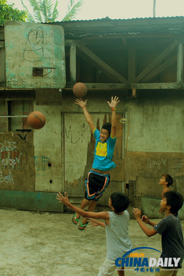 记者探访菲律宾灾区 少年玩篮球不亦乐乎(独家组图)