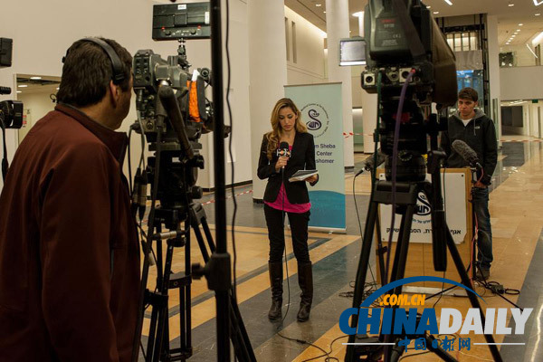 1月2日,在以色列特拉维夫,记者在以色列前总理沙龙接受救治的谢巴赫医疗中心进行报道。(图片来源:新华社)