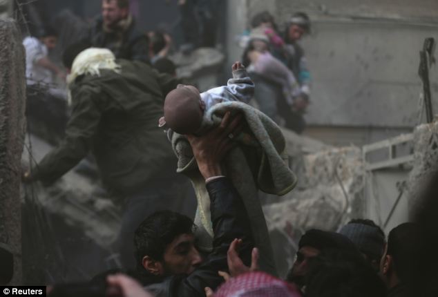 叙移交化武首日遭空袭 民众组人链废墟中拯救儿童