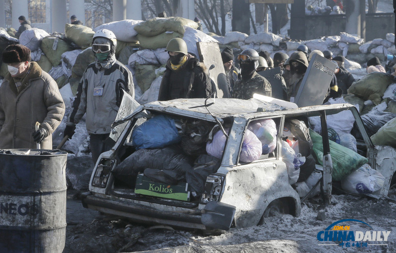 盾牌警棍头盔:乌克兰反政府示威者装备不输警察