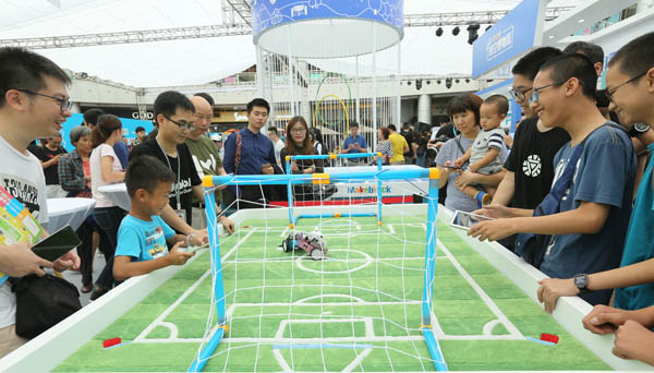 Li and his team were demonstrating their invention at the Play+Make event for Beijing's primary and secondary school students in late May.