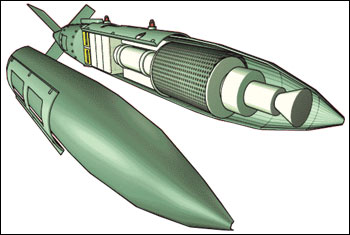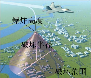 美军飞机投掷电磁脉冲弹示意图。电磁脉冲弹通常在空中爆炸以保证足够的破坏效能