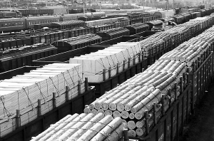 在俄罗斯阿穆尔州的腾达火车站,大批木材、煤炭等物资已装上火车,等待运往中国的黑河