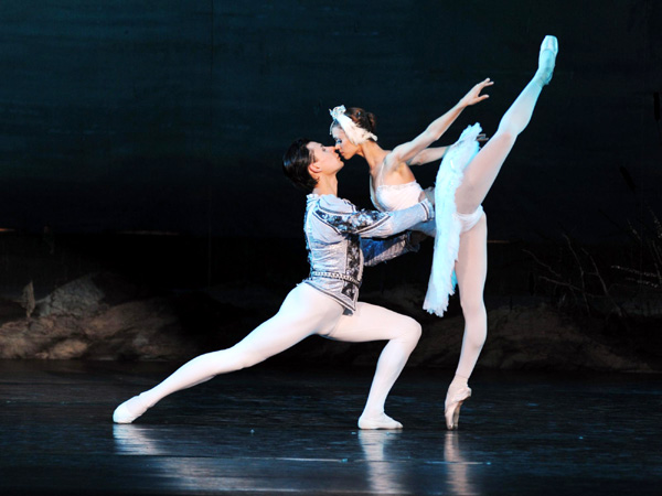 Russian dancers perform the ballet classic "Swan Lake" at the second China Xinjiang International Folk Dance Festival on July 21, 2011.[Photo/Xinhua]