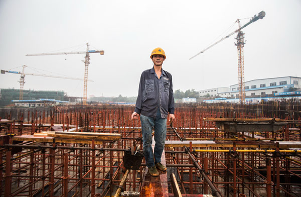Peng Zhiwei works at a construction site in Changsha, capital of Central China's Hunan province. Photos by Zhang Yinyu / For China Daily |
