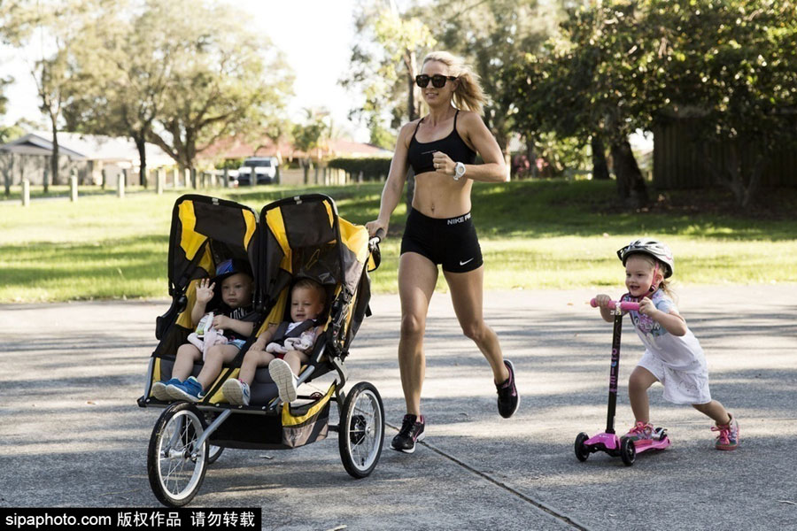 Super fit mother works out with her three children
