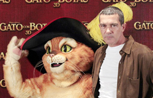 Cast members of 'Puss In Boots' promote the film in Mexico City on Nov 15, 2011.