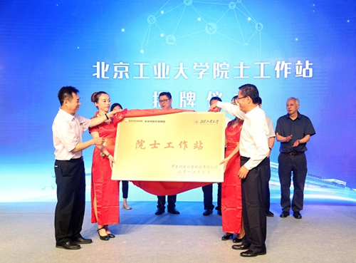 The unveiling ceremony for Beijing University of Technology's academician workstation is held in Zhongguancun Medical Devices Park on June 18. [Photo/mpark.com.cn] |
