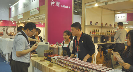 A visitor tastes pickled vegetable at a Taiwan exhibition booth. Liu Xiaoyu / For China Daily
