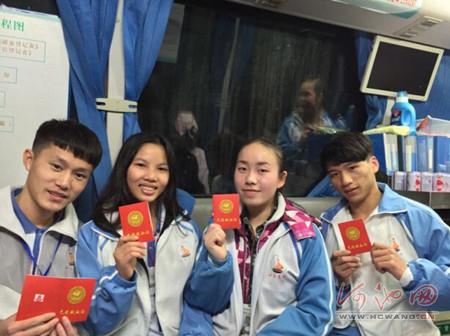 A total of 1,239 teachers and students in nine senior high schools, universities and technical secondary schools in Hechi, Guangxi, voluntarily donated over 290,000 milliliters of blood in November and December last year.